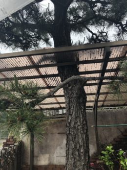カーポートを突き抜ける松の木!名古屋市昭和区にて伐採を実施しました。